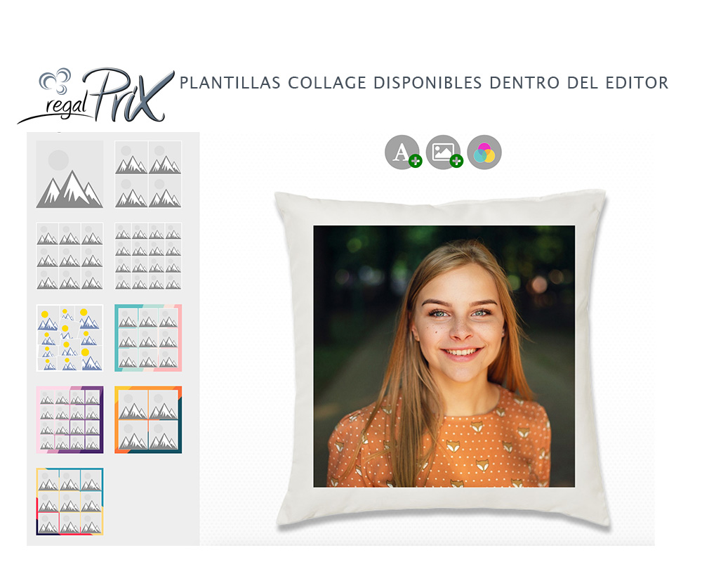 Puedes crear tu foto cojín con solo una foto, o crear un cojín personalizado collage, usando una de nuestras plantillas prediseñadas. Es un montaje con varias imágenes que tú eliges.