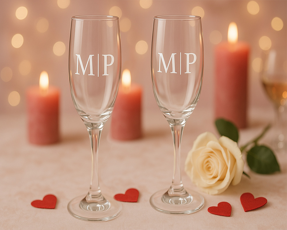 Estas copas de champán personalizadas añaden un toque de elegancia y exclusividad a cualquier celebración, sea una boda, aniversario o una cena romántica. ¡Solo añade burbujas y disfruta del momento!