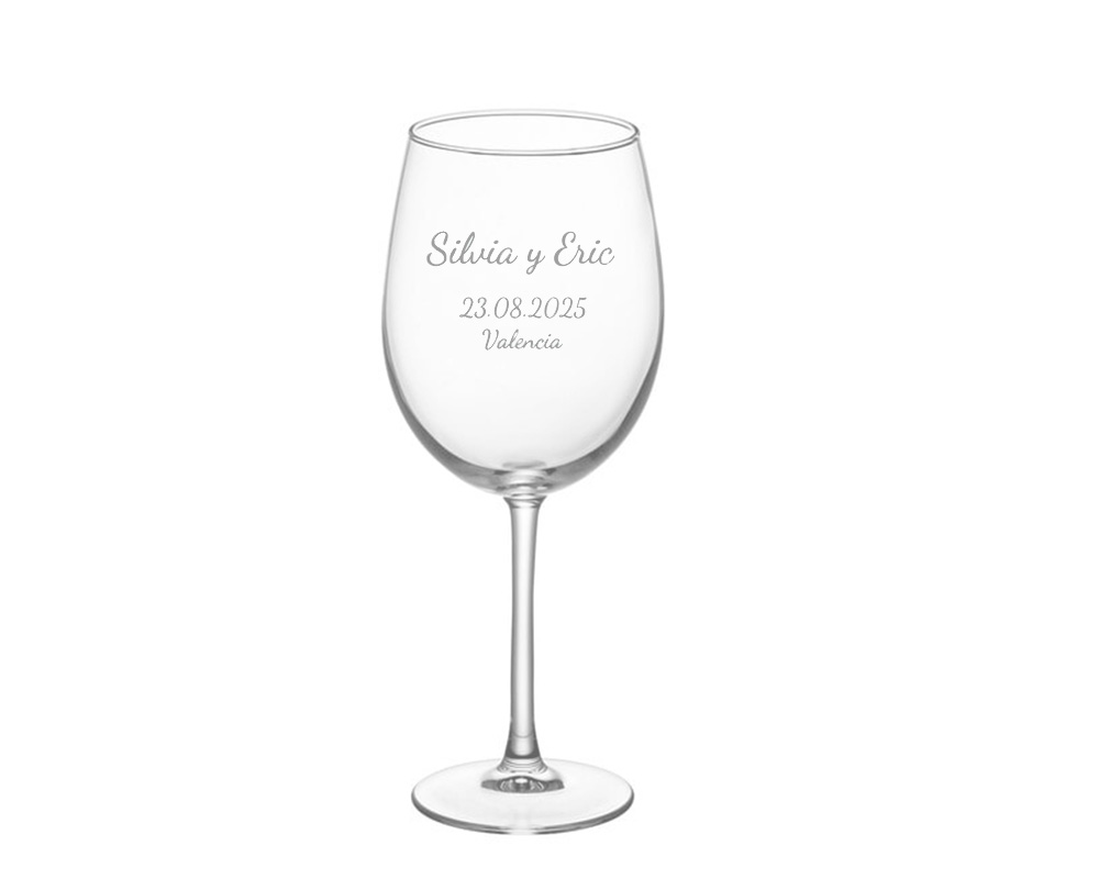 Estas copas de vino son un regalo ideal para conmemorar momentos especiales. Puedes grabar los nombres o iniciales de los novios, junto con la fecha y lugar de la celebración, creando así un recuerdo único y significativo. Son perfectas para bodas y aniversarios, ofreciendo un detalle elegante y duradero.