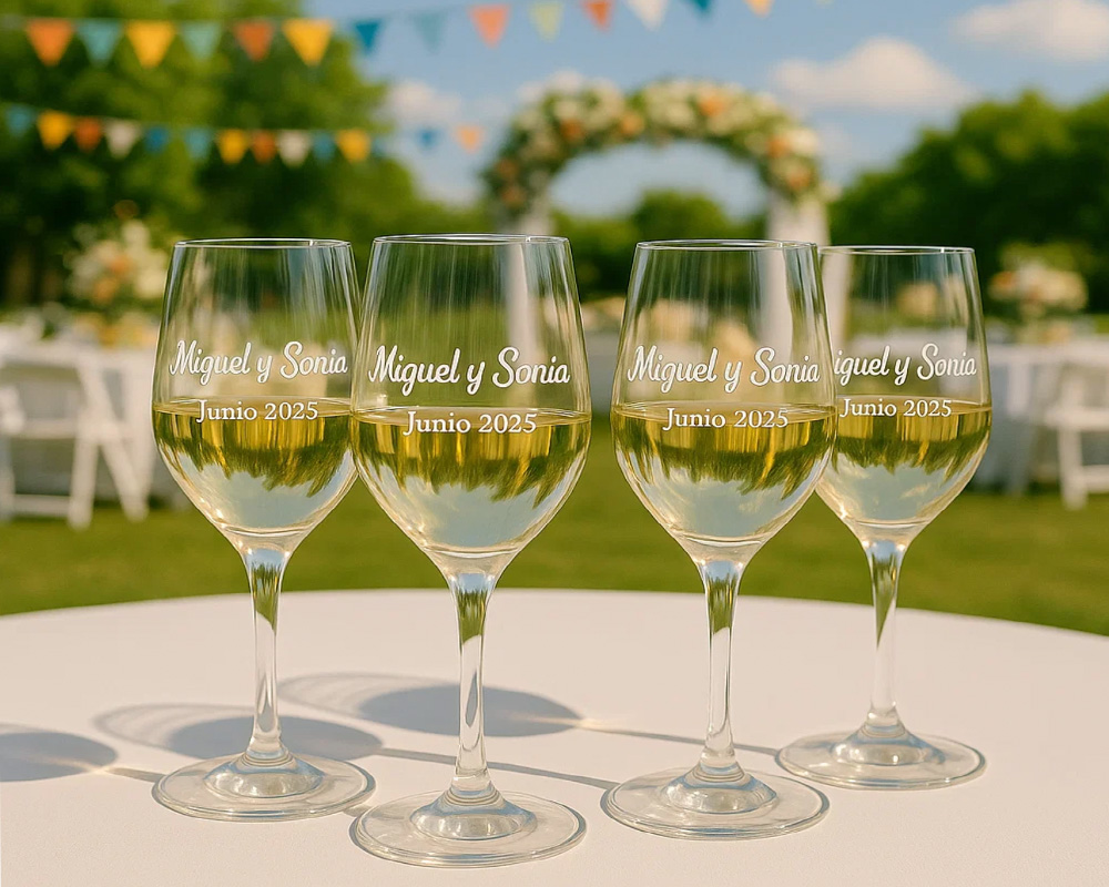 Las copas de vino personalizadas son una excelente opción para eventos especiales como boda, aniversarios, cenas de empresa o simplemente para regalar. Puedes grabar nombres, fechas o un mensaje especial en la copa para convertirla en un recuerdo único y emotivo.