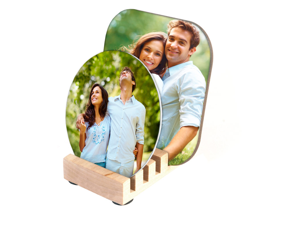 Set posavasos personalizados con soporte es un juego de 4 posavasos cuadrados de 10 cm de diametro personalizables con soporte de madera. Los posavasos con foto son duraderos hechos de una especie de conglomerado resistente al agua. Solo tienes que elegir la foto que más te guste para personalizarlos. Es un regalo práctico y muy original.