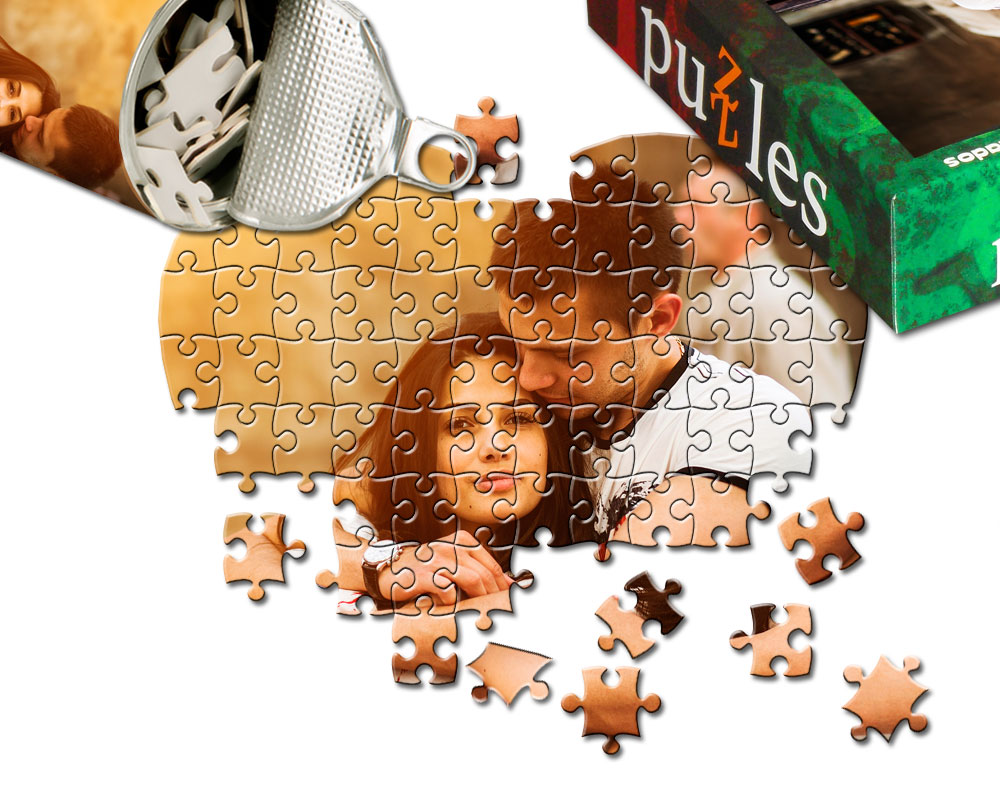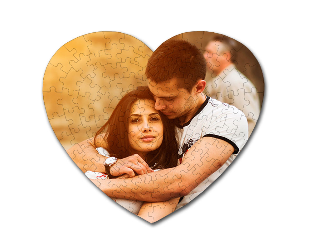 Este es el puzzle de corazón más espectacular por sus grandes dimensiones (35x31 cms). El foto puzzle corazón se presenta montado, sobre un marco que lleva impresa la foto elegida. Puedes poner abajo el texto que desees. No incluye caja personalizada.