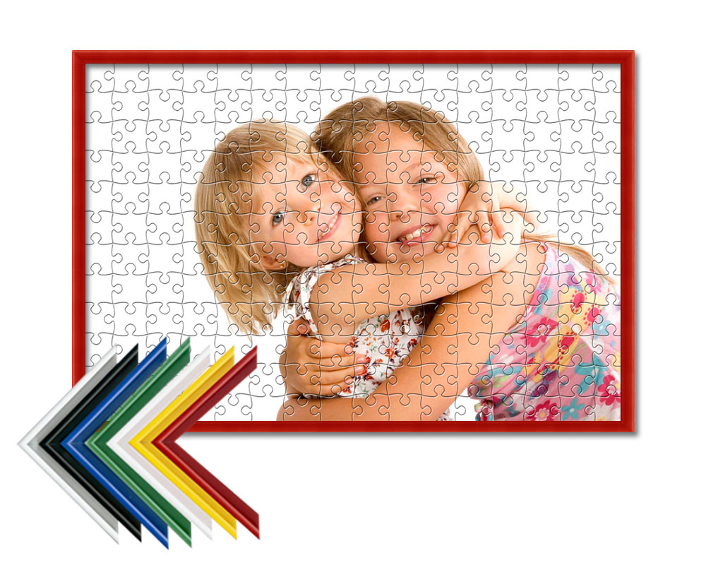 Tienes siete colores de marco distintos para elegir. El puzzle de cartón con marco está disponible de 100, 500, 1000 y 2000 piezas. Todos nuestros puzzles de cartón desde 200 piezas incluyen caja personalizada.