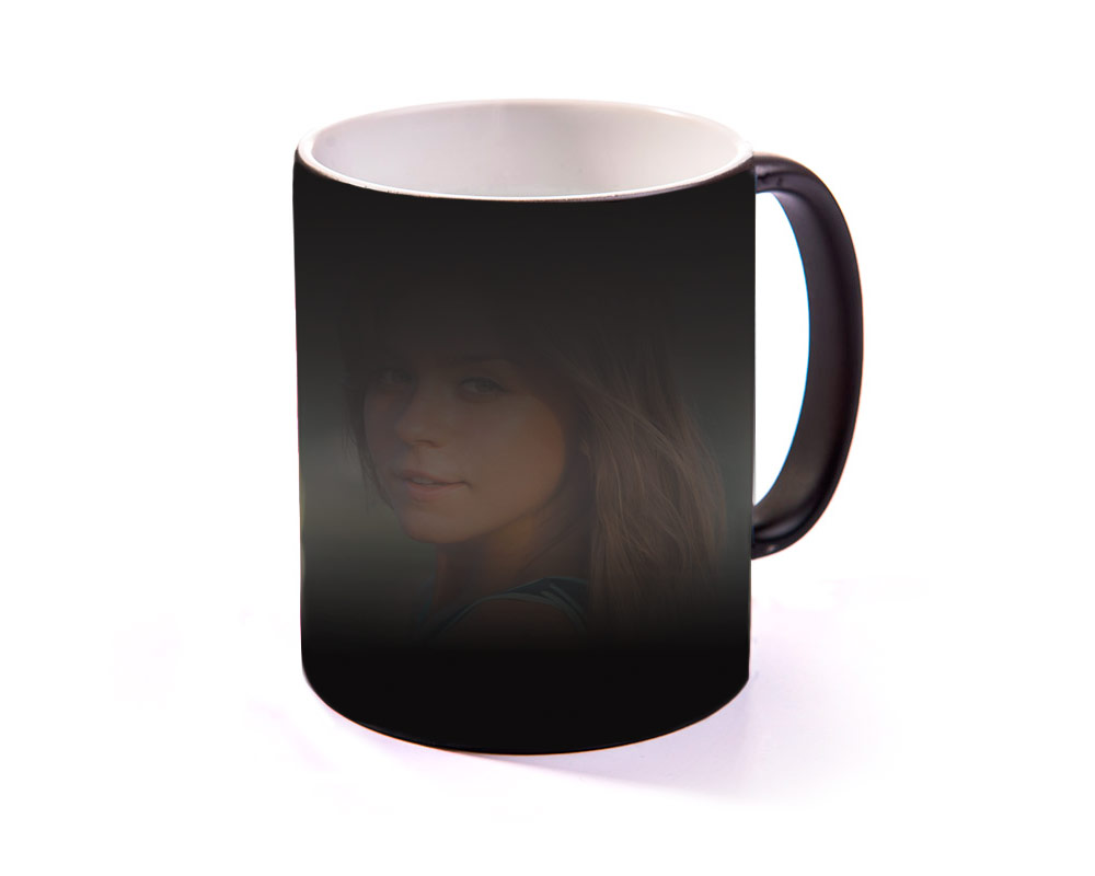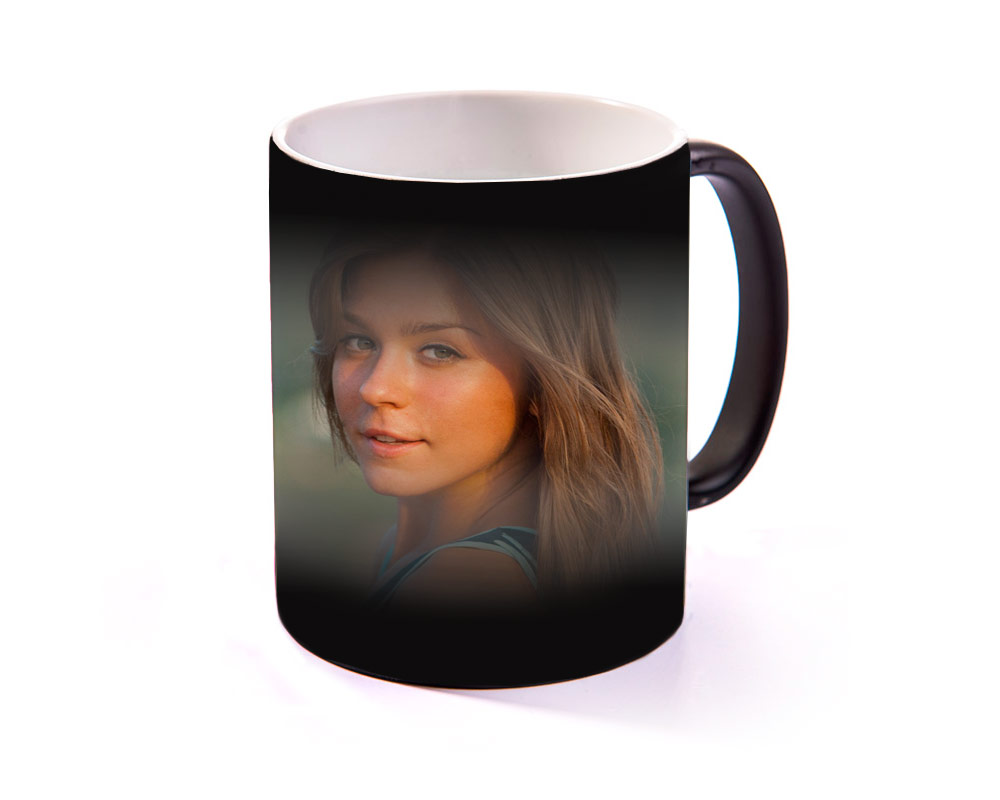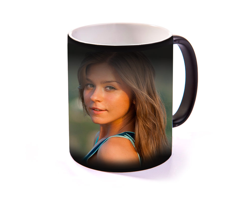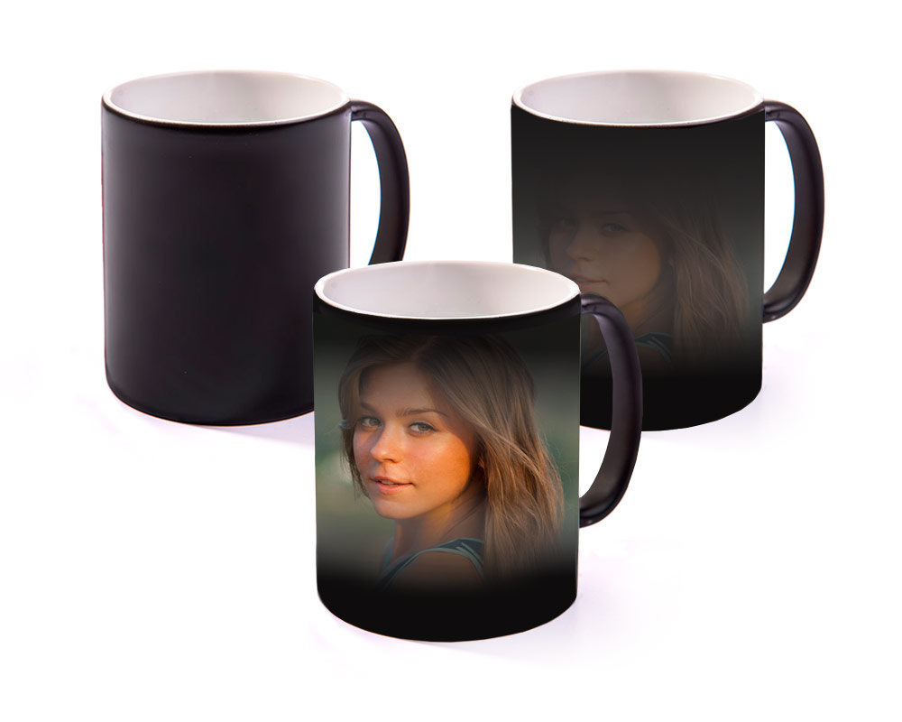 Es una taza de porcelana de alta calidad, de color negro en su exterior, personalizada con tu foto. Al calentar aparece la foto que tu has elegido.