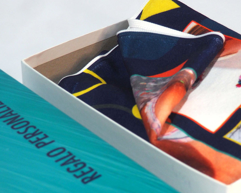 Toalla personalizada de playa Regalprix es un foto regalo original y útil para tus familiares y amigos. Un objeto imprescindible para llevar a la playa, piscina o sauna.