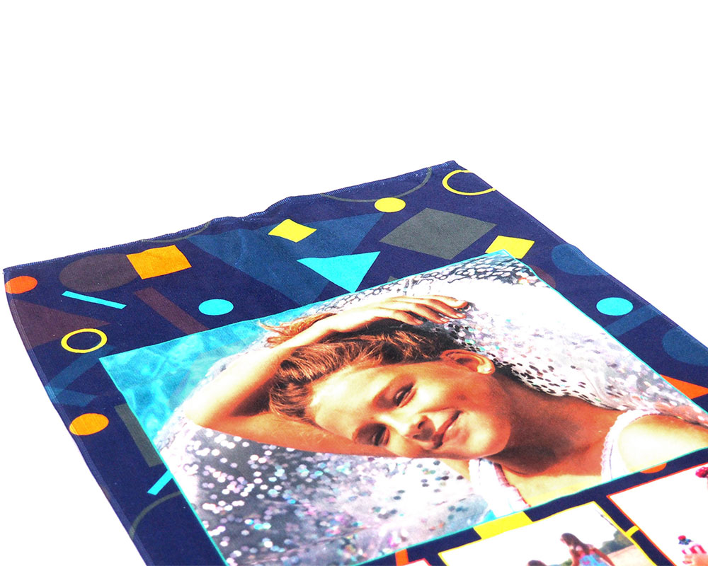 Toalla de playa de algodón personalizada con fotos y textos, un regalo exclusivo y divertido.
